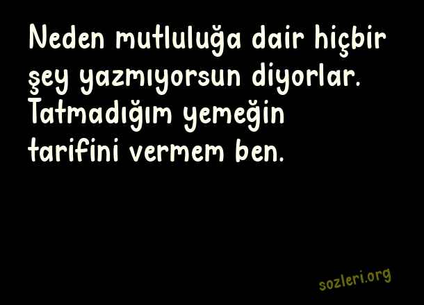 Neden mutluluğa dair hiçbir şey yazmıyorsun diyorlar. Tatmadığım yemeğin tarifini vermem ben. ( Neden )