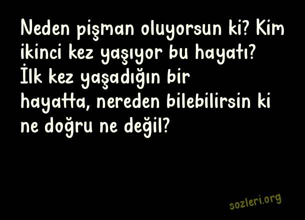 Neden pişman oluyorsun ki? Kim ikinci kez yaşıyor bu hayatı? İlk kez yaşadığın bir hayatta, nereden bilebilirsin ki ne doğru ne değil? ( Neden )