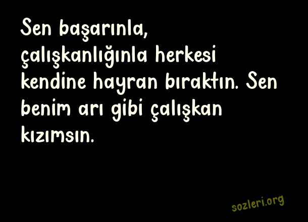 Sen başarınla, çalışkanlığınla herkesi kendine hayran bıraktın. Sen benim arı gibi çalışkan kızımsın. ( Anneden Kızına Güzel Sözler )