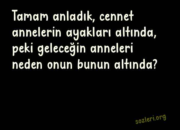 Tamam anladık, cennet annelerin ayakları altında, peki geleceğin anneleri neden onun bunun altında? ( Neden )