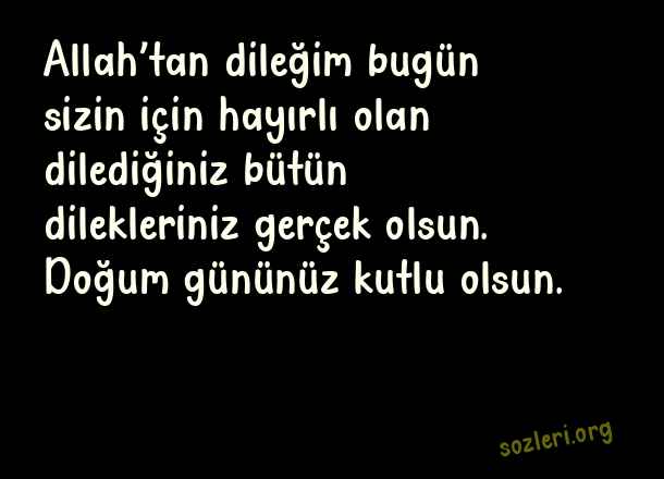Allah’tan dileğim bugün sizin için hayırlı olan dilediğiniz bütün dilekleriniz gerçek olsun. Doğum gününüz kutlu olsun. ( Öğretmene Doğum Günü )