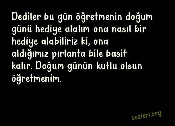 Dediler bu gün öğretmenin doğum günü hediye alalım ona nasıl bir hediye alabiliriz ki, ona aldığımız pırlanta bile basit kalır. Doğum günün kutlu olsun öğretmenim. ( Öğretmene Doğum Günü )