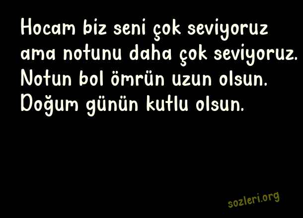 Hocam biz seni çok seviyoruz ama notunu daha çok seviyoruz. Notun bol ömrün uzun olsun. Doğum günün kutlu olsun. ( Öğretmene Doğum Günü )