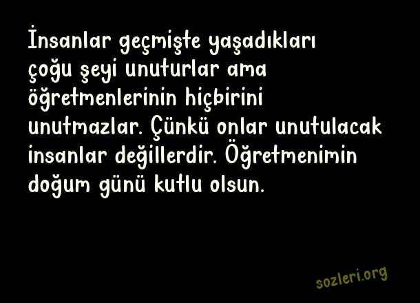 İnsanlar geçmişte yaşadıkları çoğu şeyi unuturlar ama öğretmenlerinin hiçbirini unutmazlar. Çünkü onlar unutulacak insanlar değillerdir. Öğretmenimin doğum günü kutlu olsun. ( Öğretmene Doğum Günü )