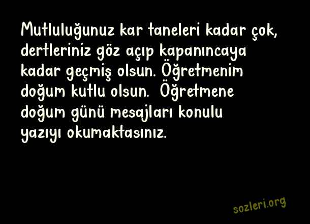 Mutluluğunuz kar taneleri kadar çok, dertleriniz göz açıp kapanıncaya kadar geçmiş olsun. Öğretmenim doğum kutlu olsun. Öğretmene doğum günü mesajları konulu yazıyı okumaktasınız. ( Öğretmene Doğum Günü )