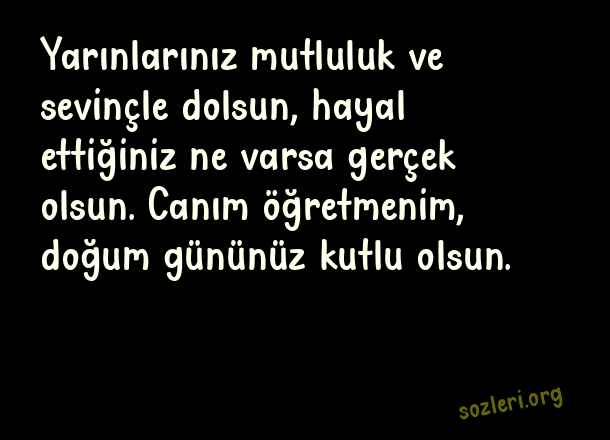 Yarınlarınız mutluluk ve sevinçle dolsun, hayal ettiğiniz ne varsa gerçek olsun. Canım öğretmenim, doğum gününüz kutlu olsun. ( Öğretmene Doğum Günü )