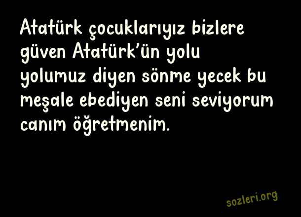 Atatürk çocuklarıyız bizlere güven Atatürk’ün yolu yolumuz diyen sönme yecek bu meşale ebediyen seni seviyorum canım öğretmenim. ( Öğretmene Teşekkür )