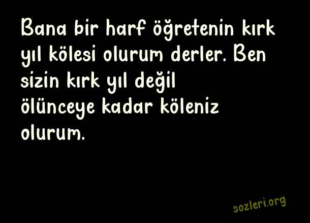 Bana bir harf öğretenin kırk yıl kölesi olurum derler. Ben sizin kırk yıl değil ölünceye kadar köleniz olurum. ( Öğretmene Teşekkür )