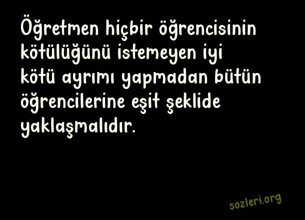 Öğretmen hiçbir öğrencisinin kötülüğünü istemeyen iyi kötü ayrımı yapmadan bütün öğrencilerine eşit şeklide yaklaşmalıdır. ( Öğretmene Teşekkür )