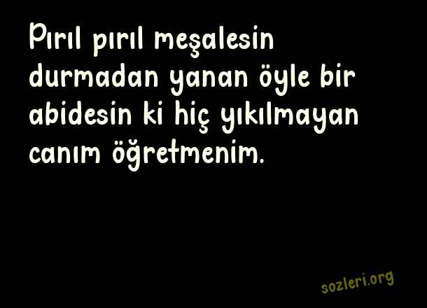 Pırıl pırıl meşalesin durmadan yanan öyle bir abidesin ki hiç yıkılmayan canım öğretmenim. ( Öğretmene Teşekkür )