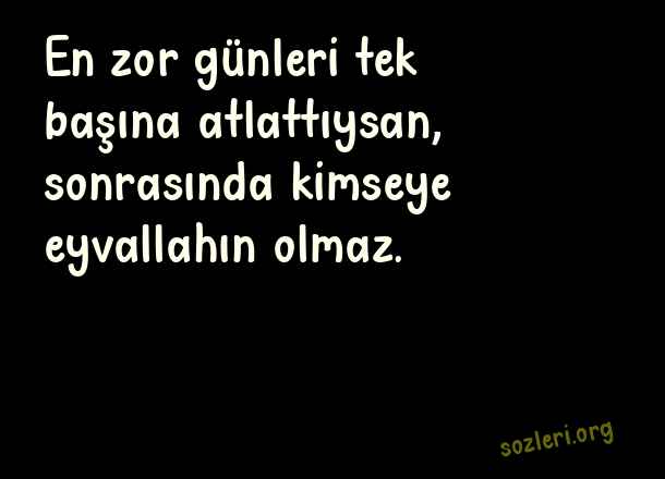 En zor günleri - Ok Gibi Sözler .. En zor günleri tek başına atlattıysan, sonrasında kimseye eyvallahın olmaz. ( Ok Gibi Sözler )