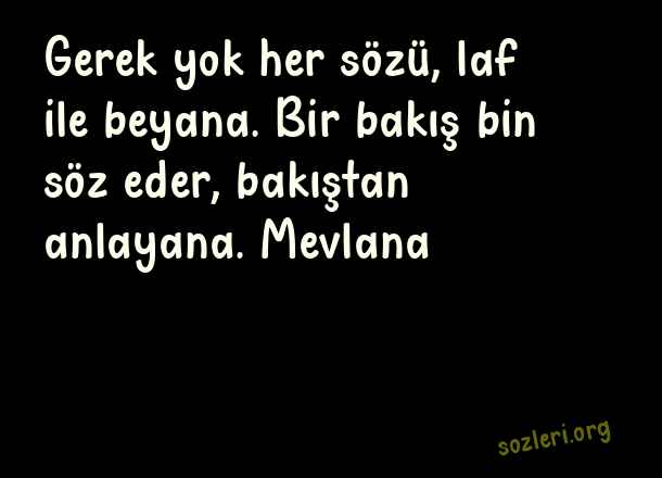 Gerek yok her sözü, laf ile beyana. Bir bakış bin söz eder, bakıştan anlayana. Mevlana ( Ok Gibi Sözler )