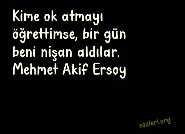 Kime ok atmayı öğrettimse, bir gün beni nişan aldılar. Mehmet Akif Ersoy ( Ok Gibi Sözler )