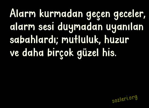 Alarm kurmadan geçen geceler, alarm sesi duymadan uyanılan sabahlardı; mutluluk, huzur ve daha birçok güzel his. ( Okulların Açılması İle İlgili Komik Sözler )