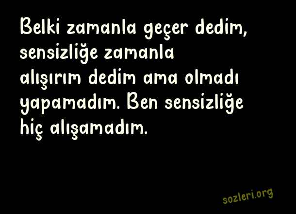 Belki zamanla geçer dedim, sensizliğe zamanla alışırım dedim ama olmadı yapamadım. Ben sensizliğe hiç alışamadım. ( Ölen Kişiye Özlem )