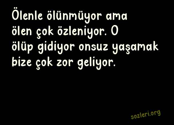 Ölenle ölünmüyor ama ölen çok özleniyor. O ölüp gidiyor onsuz yaşamak bize çok zor geliyor. ( Ölen Kişiye Özlem )