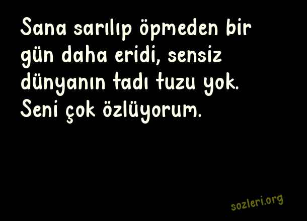 Sana sarılıp öpmeden bir gün daha eridi, sensiz dünyanın tadı tuzu yok. Seni çok özlüyorum. ( Ölen Kişiye Özlem )