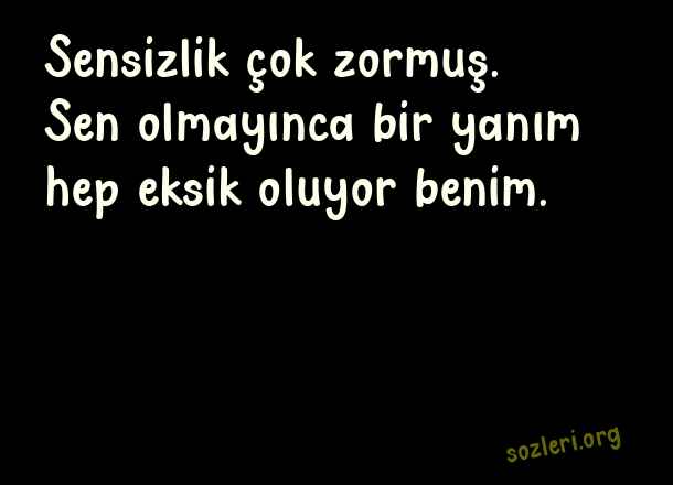 Sensizlik çok zormuş. Sen olmayınca bir yanım hep eksik oluyor benim. ( Ölen Kişiye Özlem )