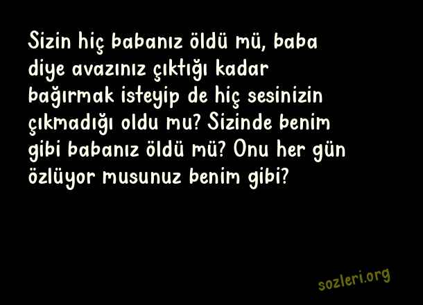 Sizin hiç babanız öldü mü, baba diye avazınız çıktığı kadar bağırmak isteyip de hiç sesinizin çıkmadığı oldu mu? Sizinde benim gibi babanız öldü mü? Onu her gün özlüyor musunuz benim gibi? ( Ölen Kişiye Özlem )