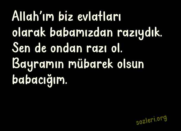 Allah’ım biz evlatları olarak babamızdan razıydık. Sen de ondan razı ol. Bayramın mübarek olsun babacığım. ( Ölmüş Babaya Bayram )