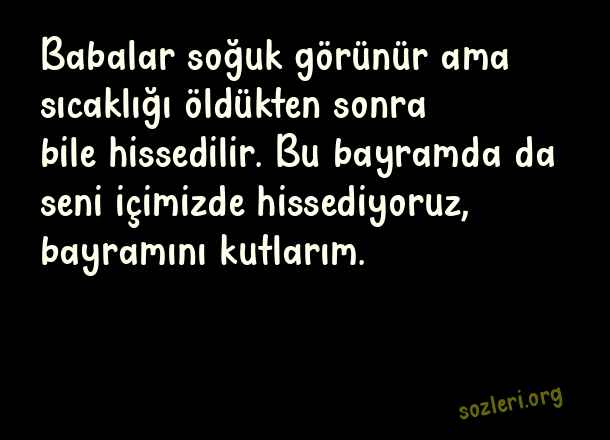 Babalar soğuk görünür ama sıcaklığı öldükten sonra bile hissedilir. Bu bayramda da seni içimizde hissediyoruz, bayramını kutlarım. ( Ölmüş Babaya Bayram )