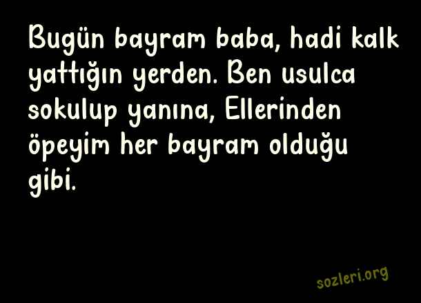 Bugün bayram baba, hadi kalk yattığın yerden. Ben usulca sokulup yanına, Ellerinden öpeyim her bayram olduğu gibi. ( Ölmüş Babaya Bayram )