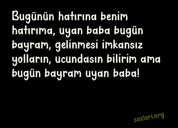 Bugünün hatırına benim hatırıma, uyan baba bugün bayram, gelinmesi imkansız yolların, ucundasın bilirim ama bugün bayram uyan baba! ( Ölmüş Babaya Bayram )