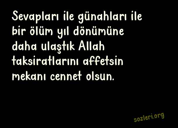 Sevapları ile günahları ile bir ölüm yıl dönümüne daha ulaştık Allah taksiratlarını affetsin mekanı cennet olsun. ( Ölüm Yıldönümü )