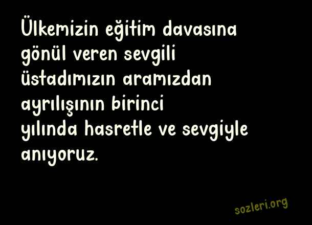 Ülkemizin eğitim davasına gönül veren sevgili üstadımızın aramızdan ayrılışının birinci yılında hasretle ve sevgiyle anıyoruz. ( Ölüm Yıldönümü )