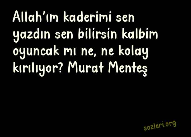 Allah’ım kaderimi sen yazdın sen bilirsin kalbim oyuncak mı ne, ne kolay kırılıyor? Murat Menteş ( Oyuncak )