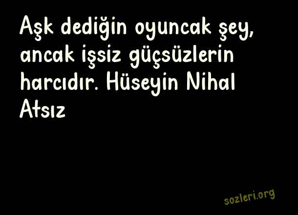 Aşk dediğin oyuncak - Oyuncak İle İlgili Sözler .. Aşk dediğin oyuncak şey, ancak işsiz güçsüzlerin harcıdır. Hüseyin Nihal Atsız ( Oyuncak )