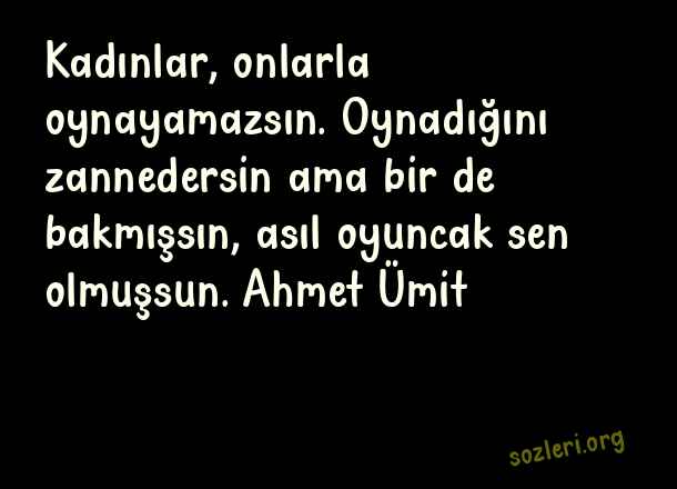 Kadınlar, onlarla oynayamazsın. Oynadığını zannedersin ama bir de bakmışsın, asıl oyuncak sen olmuşsun. Ahmet Ümit ( Oyuncak )