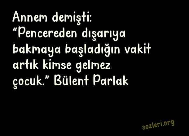 Annem demişti: “Pencereden dışarıya bakmaya başladığın vakit artık kimse gelmez çocuk.” Bülent Parlak ( Pencere )