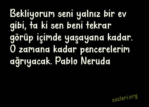 Bekliyorum seni yalnız bir ev gibi, ta ki sen beni tekrar görüp içimde yaşayana kadar. O zamana kadar pencerelerim ağrıyacak. Pablo Neruda ( Pencere )