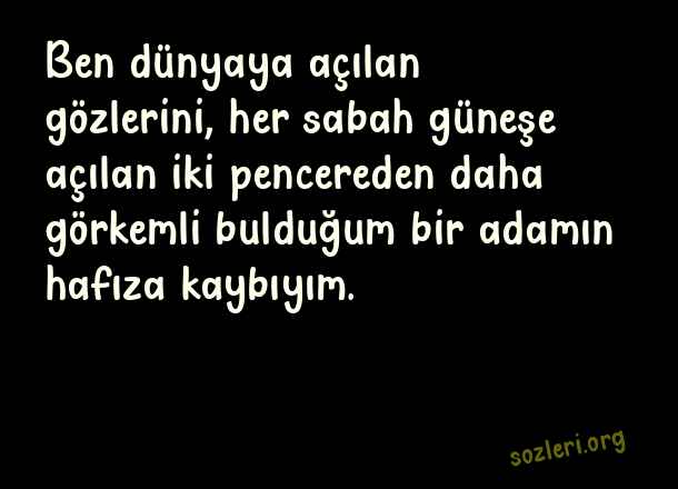 Ben dünyaya açılan gözlerini, her sabah güneşe açılan iki pencereden daha görkemli bulduğum bir adamın hafıza kaybıyım. ( Pencere )