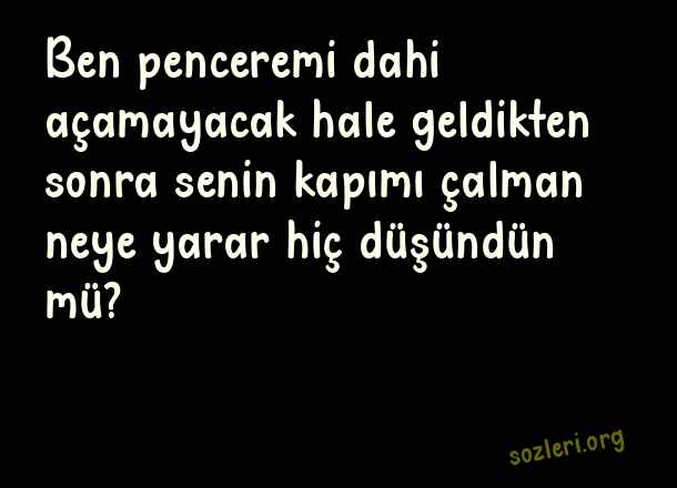Ben penceremi dahi açamayacak hale geldikten sonra senin kapımı çalman neye yarar hiç düşündün mü? ( Pencere )