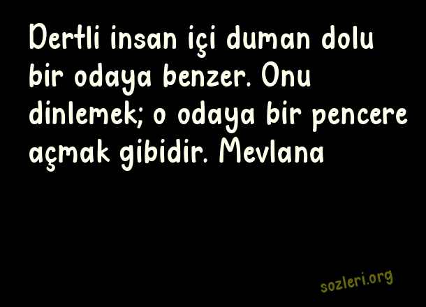 Dertli insan içi duman dolu bir odaya benzer. Onu dinlemek; o odaya bir pencere açmak gibidir. Mevlana ( Pencere )