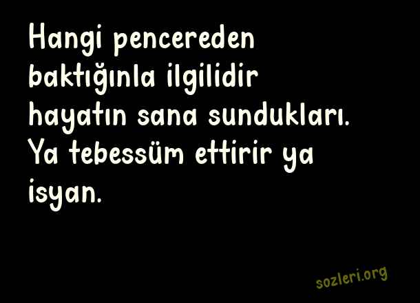 Hangi pencereden baktığınla ilgilidir hayatın sana sundukları. Ya tebessüm ettirir ya isyan. ( Pencere )