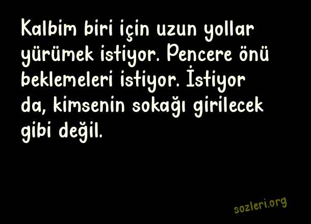 Kalbim biri için uzun yollar yürümek istiyor. Pencere önü beklemeleri istiyor. İstiyor da, kimsenin sokağı girilecek gibi değil. ( Pencere )
