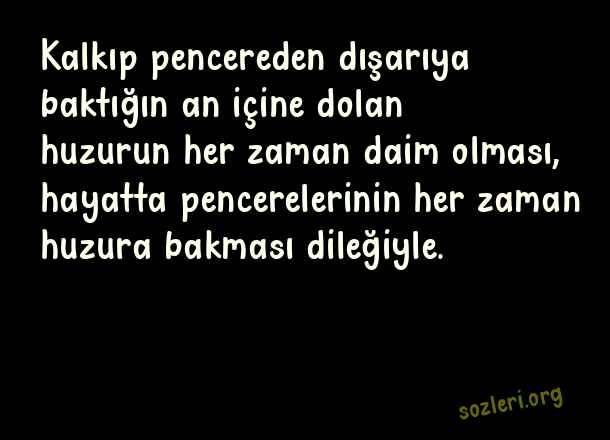 Kalkıp pencereden dışarıya baktığın an içine dolan huzurun her zaman daim olması, hayatta pencerelerinin her zaman huzura bakması dileğiyle. ( Pencere )