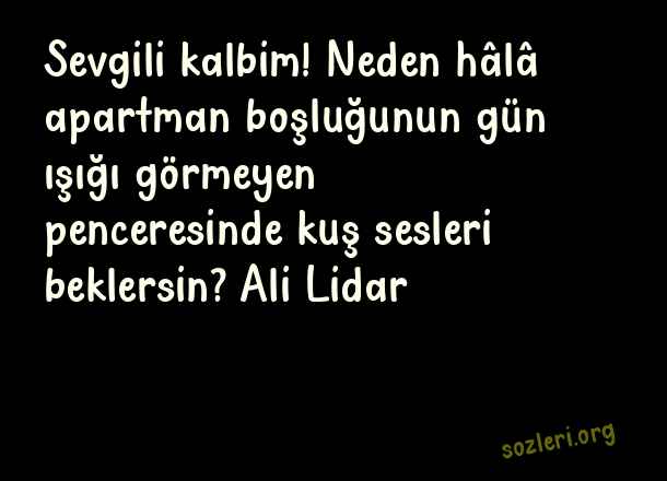 Sevgili kalbim! Neden hâlâ apartman boşluğunun gün ışığı görmeyen penceresinde kuş sesleri beklersin? Ali Lidar ( Pencere )