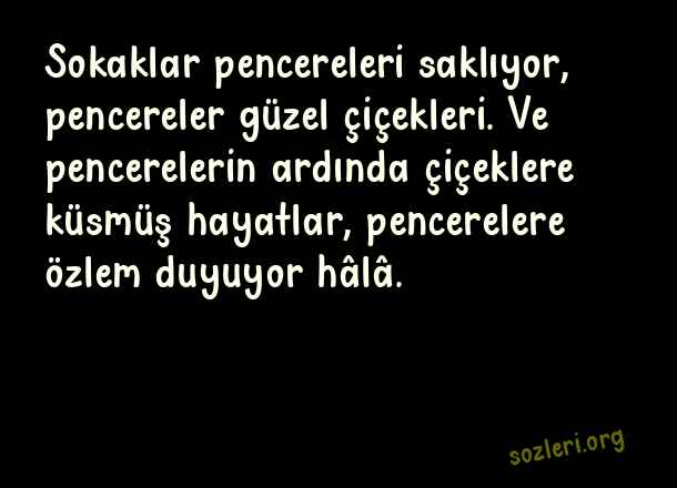 Sokaklar pencereleri saklıyor, pencereler güzel çiçekleri. Ve pencerelerin ardında çiçeklere küsmüş hayatlar, pencerelere özlem duyuyor hâlâ. ( Pencere )