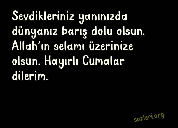 Sevdikleriniz yanınızda dünyanız barış dolu olsun. Allah’ın selamı üzerinize olsun. Hayırlı Cumalar dilerim. ( Perşembe Gecesi )