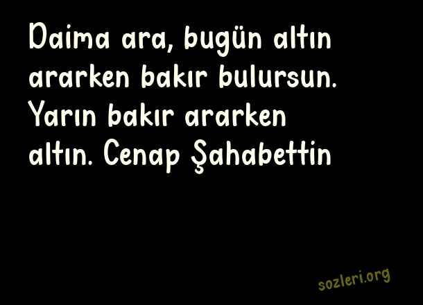 Daima ara, bugün altın ararken bakır bulursun. Yarın bakır ararken altın. Cenap Şahabettin ( Pes Etmemek )