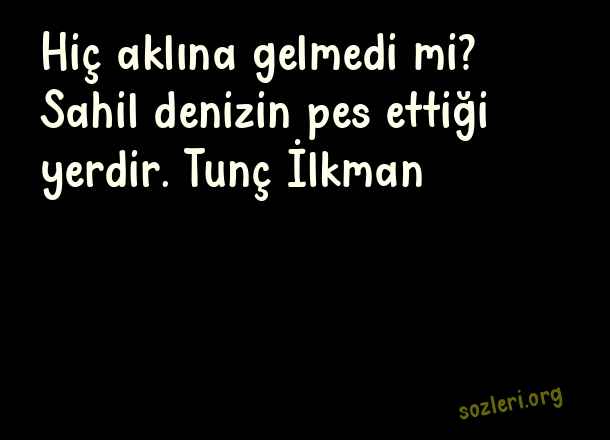 Hiç aklına gelmedi - Pes Etmemek İle İlgili Sözler .. Hiç aklına gelmedi mi? Sahil denizin pes ettiği yerdir. Tunç İlkman ( Pes Etmemek )