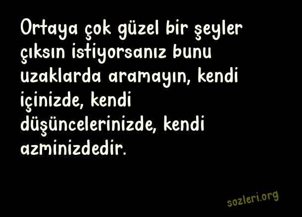 Ortaya çok güzel bir şeyler çıksın istiyorsanız bunu uzaklarda aramayın, kendi içinizde, kendi düşüncelerinizde, kendi azminizdedir. ( Pes Etmemek )