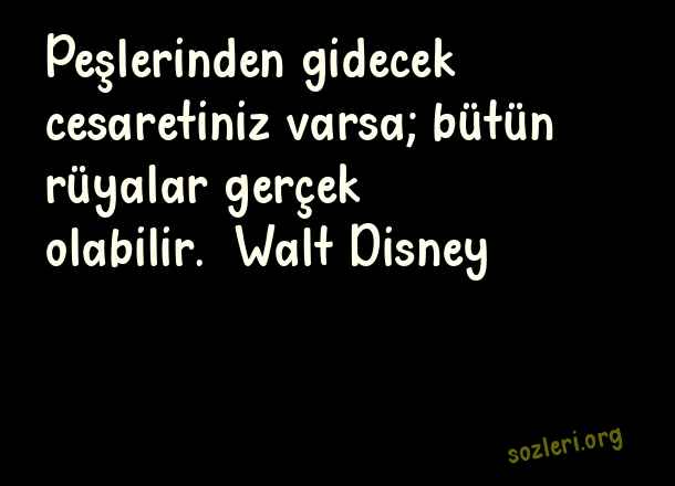 Peşlerinden gidecek cesaretiniz varsa; bütün rüyalar gerçek olabilir. Walt Disney ( Pes Etmemek )
