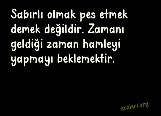 Sabırlı olmak pes etmek demek değildir. Zamanı geldiği zaman hamleyi yapmayı beklemektir. ( Pes Etmemek )