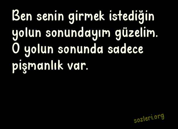 Ben senin girmek - Pişmanlık Sözleri .. Ben senin girmek istediğin yolun sonundayım güzelim. O yolun sonunda sadece pişmanlık var. ( Pişmanlık )