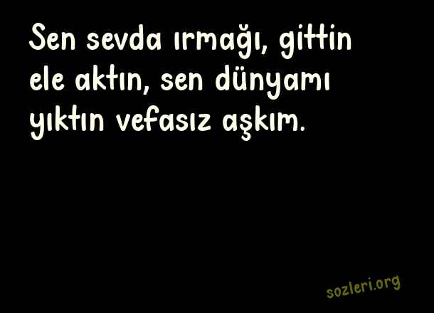 Sen sevda ırmağı, - Pişmanlık Sözleri .. Sen sevda ırmağı, gittin ele aktın, sen dünyamı yıktın vefasız aşkım. ( Pişmanlık )